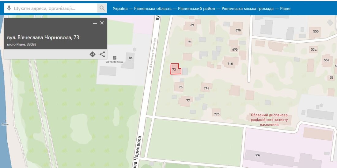 У Рівному на вулиці Вʼячеслава Чорновола, 73 хочуть збудувати черговий приватний медцентр на 3 поверхи з парковкою.