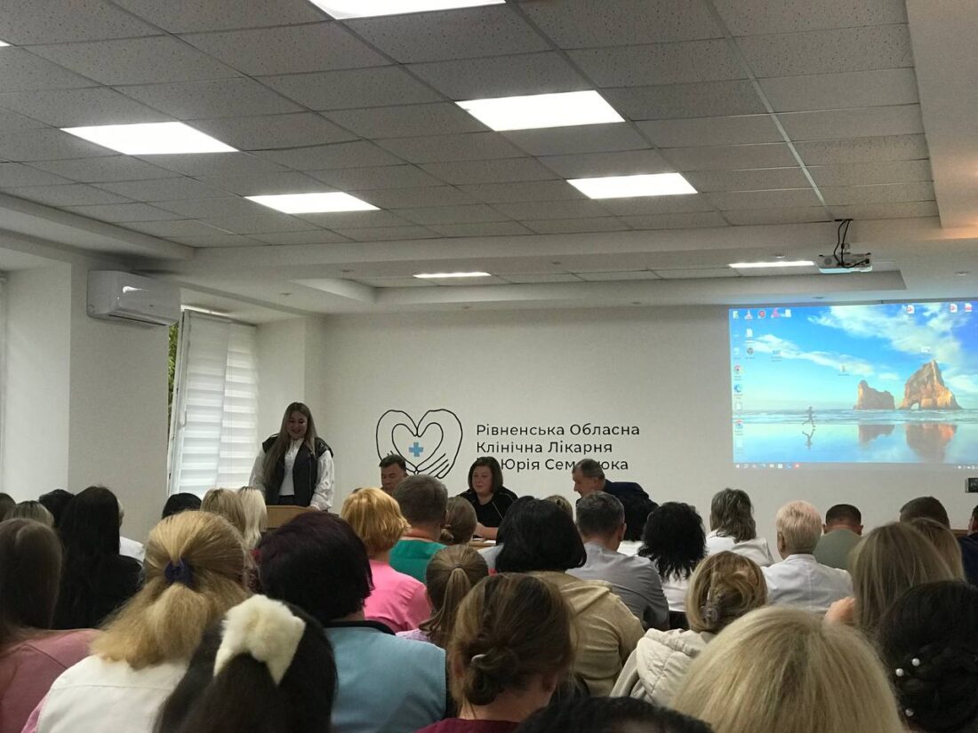Юлія Михайлишина виступає перед делегатами від підрозділів Рівненської обласної лікарні. Фото – Юліана ТЕТ.