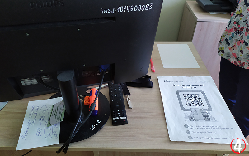 Пацієнтку для оплати можуть спрямувати і в касу, що відкрита до 11-12 години на другому поверсі амбулаторії. Там, зі слів Світлани Муравської, працює касирка благодійного фонду. Приймає, реєструє готівку в спеціальному журналі й видає квитанції.