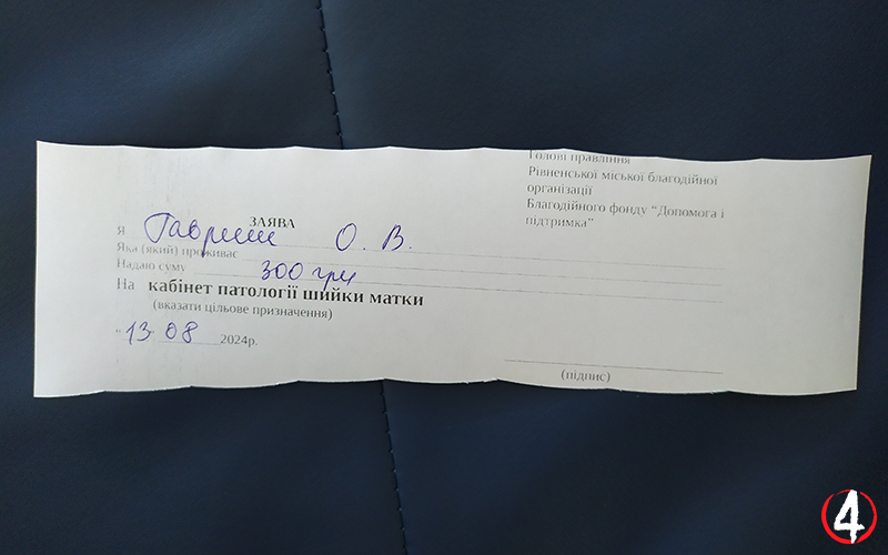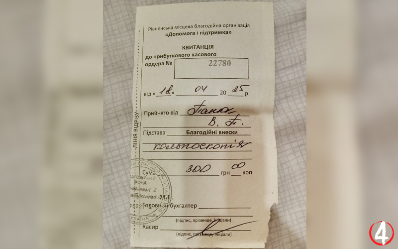 Квитанцій було більше десятка – заповнених і зі штампами Рівненської місцевої благодійної організації «Благодійний фонд “Допомога і підтримка”». Показати касові ордери від них чи чисті бланки працівниці кабінету відмовилися.