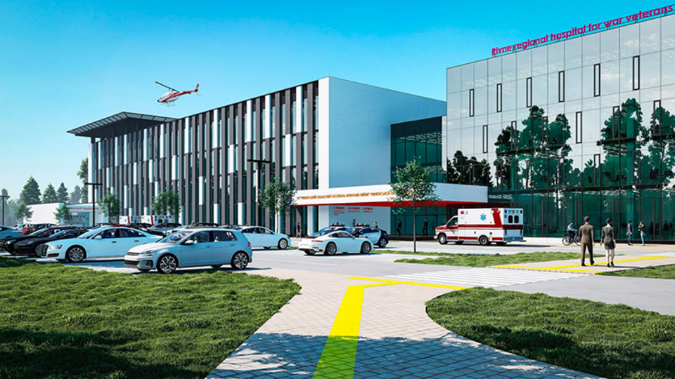 Ескізний проєкт нового корпусу госпіталю ветеранів війни у Клевані. Ілюстрація з фейсбук-сторінки колишнього голови Рівненської ОВА Віталя Коваля